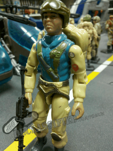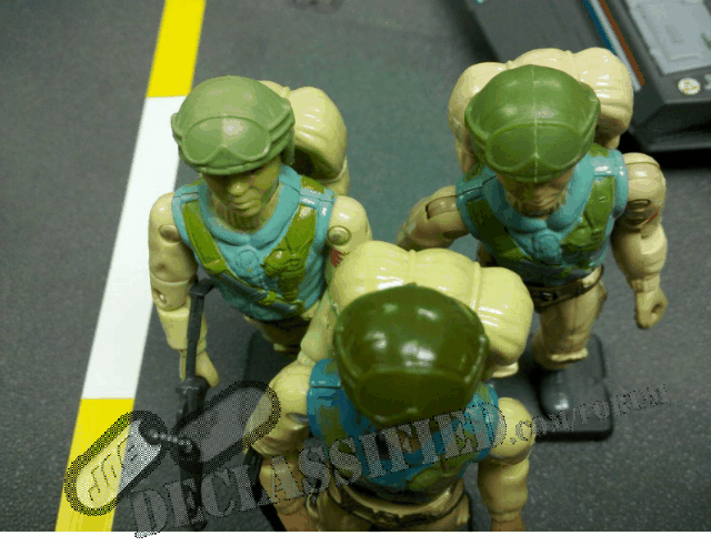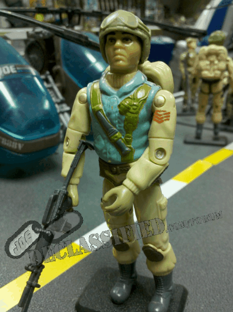 Time to move back to Condor. Condor is a Series 5 Argentinian repaint of the U.S. Airborne figure. Like Alado, his colors are distinctly different from the U.S. release. The U.S. figure is on the left, and Condor is on the right: